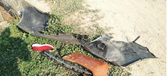 事發(fā)地點位于鹽城市鹽東鎮(zhèn)新沖村境內(nèi)的鹽黃公路。記者來到現(xiàn)場時,公路上還留有轎車剎車印,橋邊的草叢里有很多破碎的汽車部件,一只童鞋和一只大人的運動鞋落在河邊。